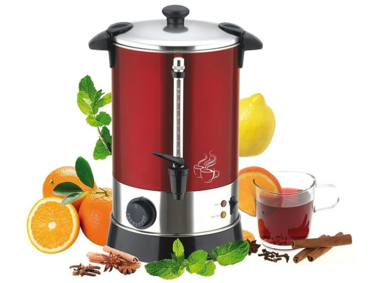 Deze glühweinketel met RVS behuizing heeft een grote inhoud, temperatuurregelaar en warmhoudfunctie.