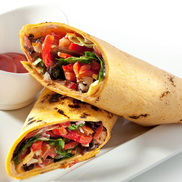 • Wrap met Mexicaanse vegi gehakt, sesamsaus en groenten