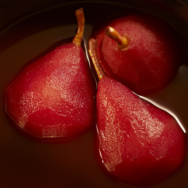 - Stoofpeertjes in warme cranberry/ wijn / kaneel saus