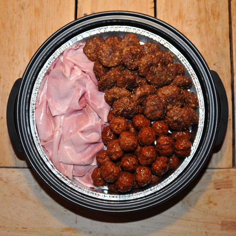 140 hapjes van onze Hapjes de Luxe schotel gecombineerd met 2x onze hapjespan a 80 warme hapjes per pan.