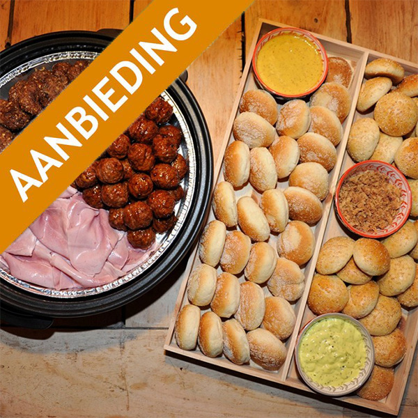 Het Plateau Together (1,5 meter) en warme Hapjespan is voldoende voor ca. 25-30 personen.