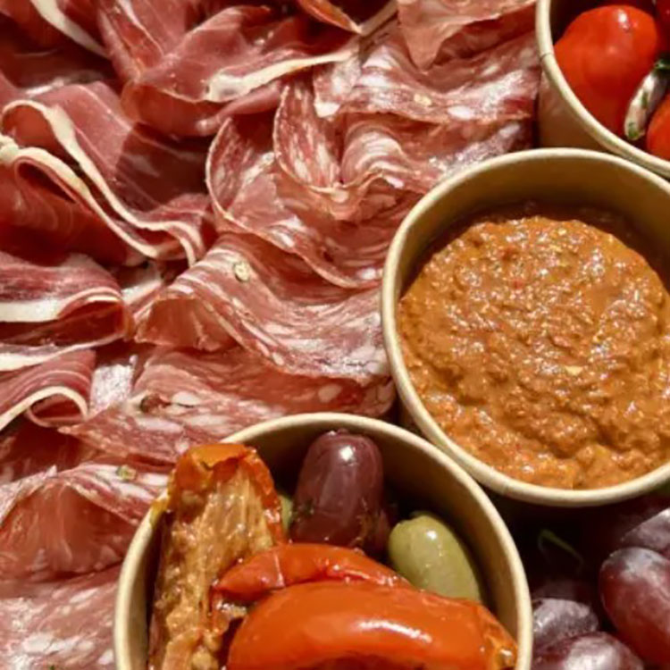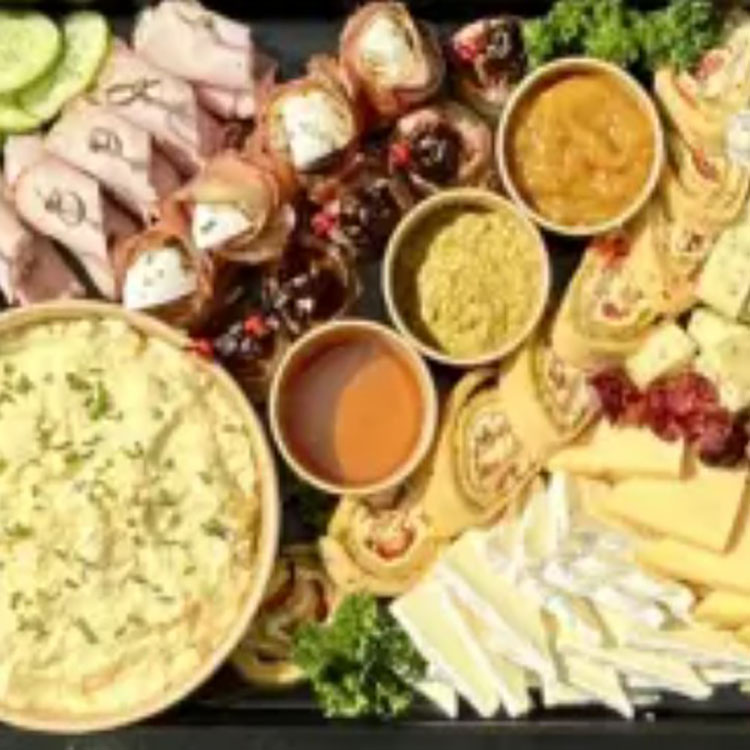 Een bonte verzameling van wat de Bourgondiër graag voorgeschoteld krijgt. Het plateau (c.a. 1.5 meter) is als hapjesplateau voldoende voor c.a. 10-15 personen. (Wordt geleverd in koelcontainer.) Klik op de foto’s voor een duidelijk beeld.