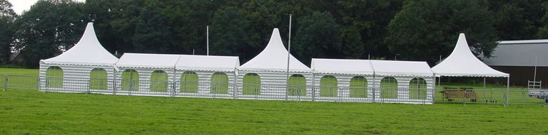 De tenten zijn in elke gewenste lengtemaat verkrijgbaar. Voor een mooie entree beschikken wij over een aantal pagodetenten deze zijn 5×5 meter met een mooie hoge punt.